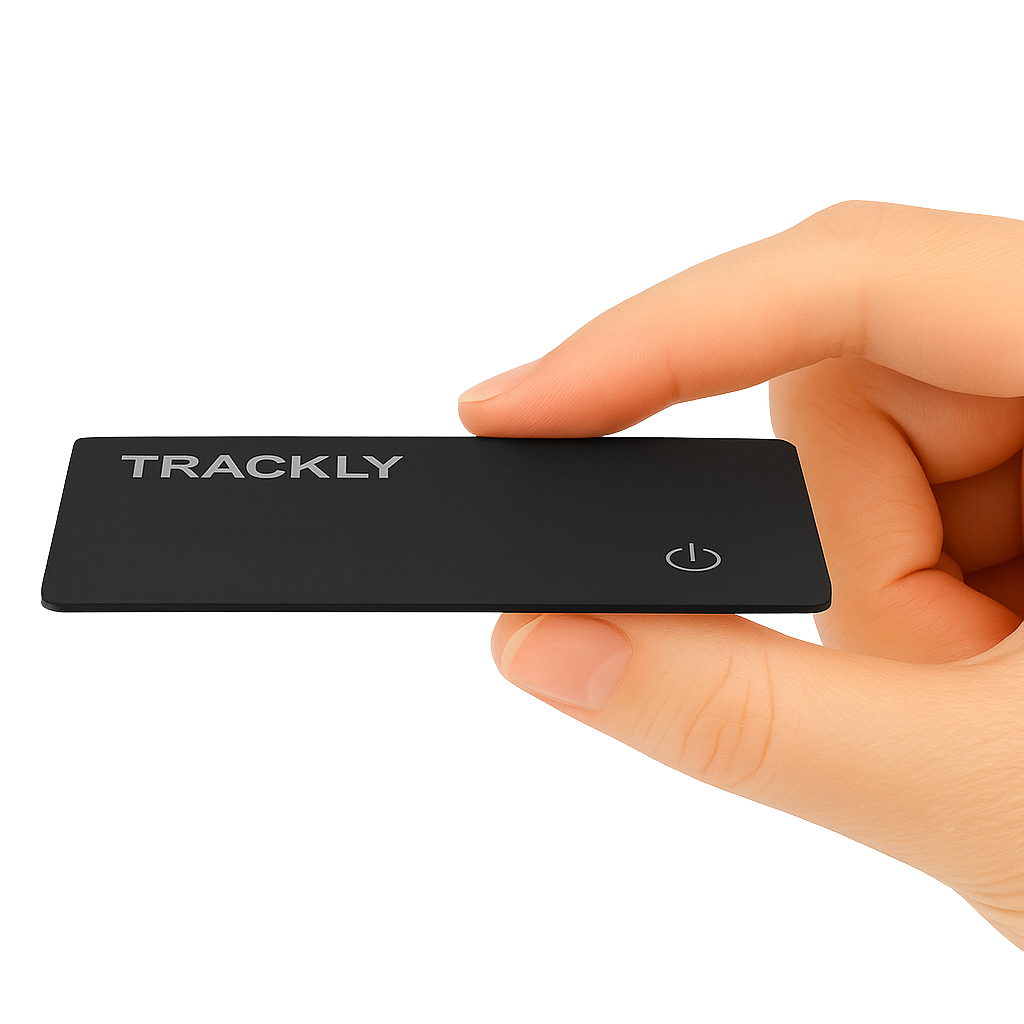 Trackly är lika tunn som två kreditkort – perfekt för plånböcker, pass och små väskor. Diskret, stilren och alltid redo.